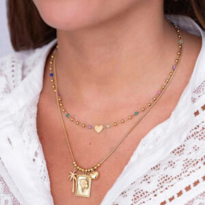 Heart Grøn Perlur Hálsketa Stál