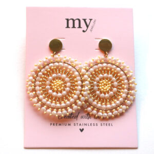 Pink Drop Oyraringar við Smáum Perlum Gylt Stál