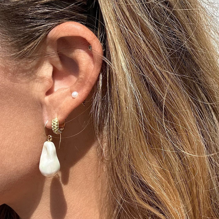 - Elegantir oyraringar við stórum baroque feskvatnsperlum frá &Copenhagen.