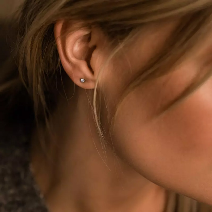 - Húðvinaligir oyraringar úr silvraðum titanium við glitandi Swarovski krystallum frá Blomdahl.