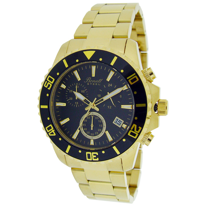 Chronograph Harra Ur 1486DS Gylt Stál Black við Leinkjureim