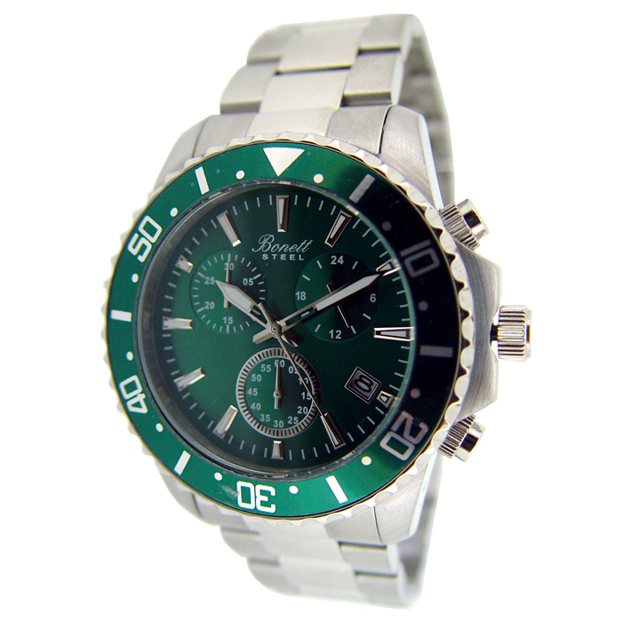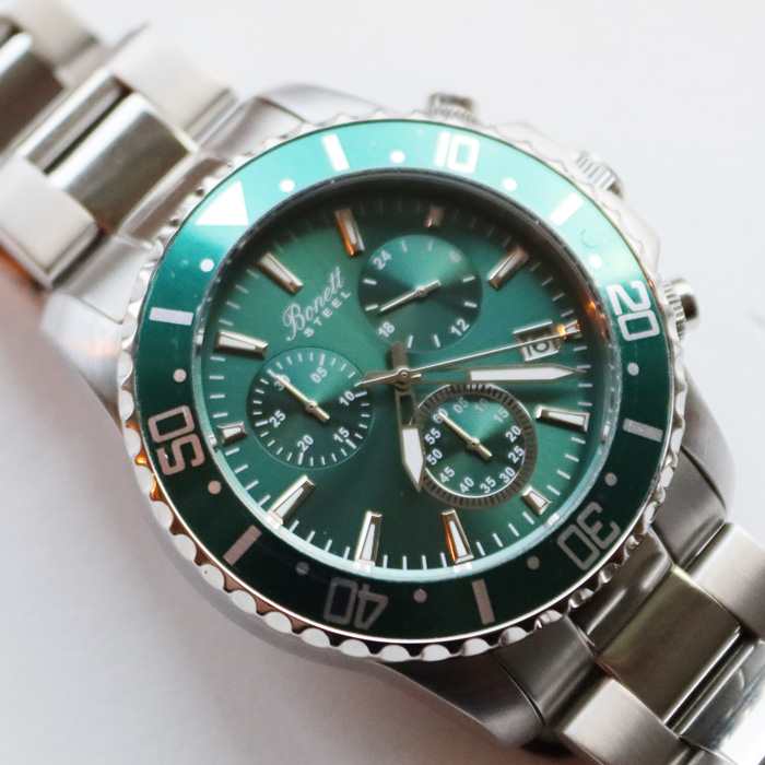 - Flott harraur við grønari urskivu, leinkjureim og 3 vísarum frá Bonett.