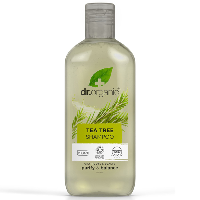 Tea Tree Shampoo frá Dr. Organic nýtir nattúrligu sóttreinsandi eginleikarnir frá tea tree oljuni saman við aloe vera og kveikjandi piparmyntuolju, fyri at reinsa og fara væl við feittutum hárið og hárbotni. Hetta er eitt serligt shampoo, ið er gjørt við reinsandi plantum frá nattúruni fyri at betra um heilsuna hjá hárinum og hárbotninum. Hetta shampoo er 100% vegansk.