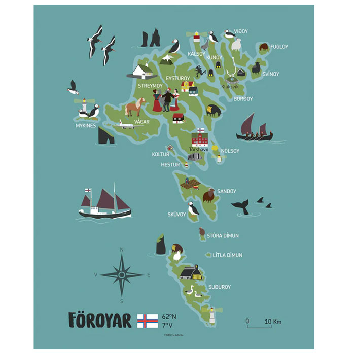 - Vøkur plakat við motivinum ‘Føroyakort’ frá FJORD by Suffía Nón.