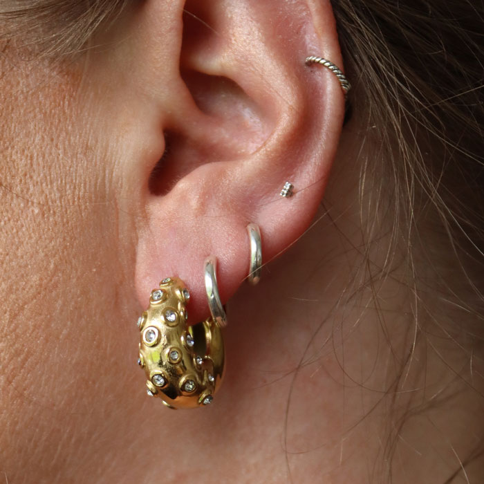 - Flottir stórir hoops oyraringar við glitrandi klárum steinum frá BAY by Aqua Dulce.