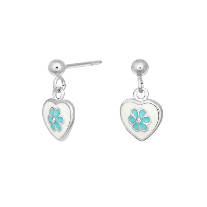- Fittir oyraringar við hjørtum, bláum blómum og glasing frá Noa Kids Jewellery.