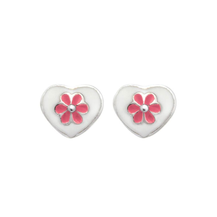 Hjarta við Pink Blómu Oyraringar Silvur