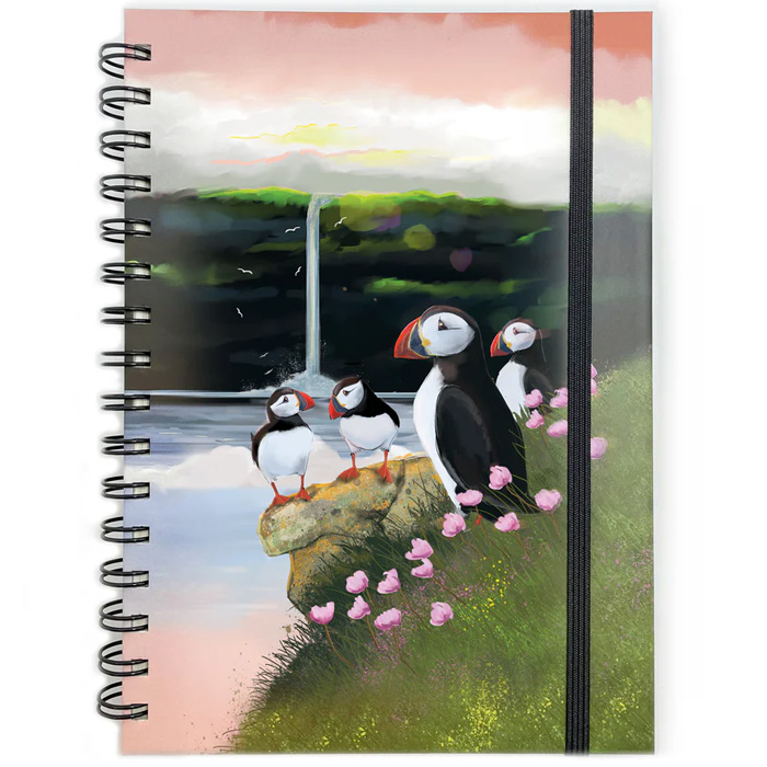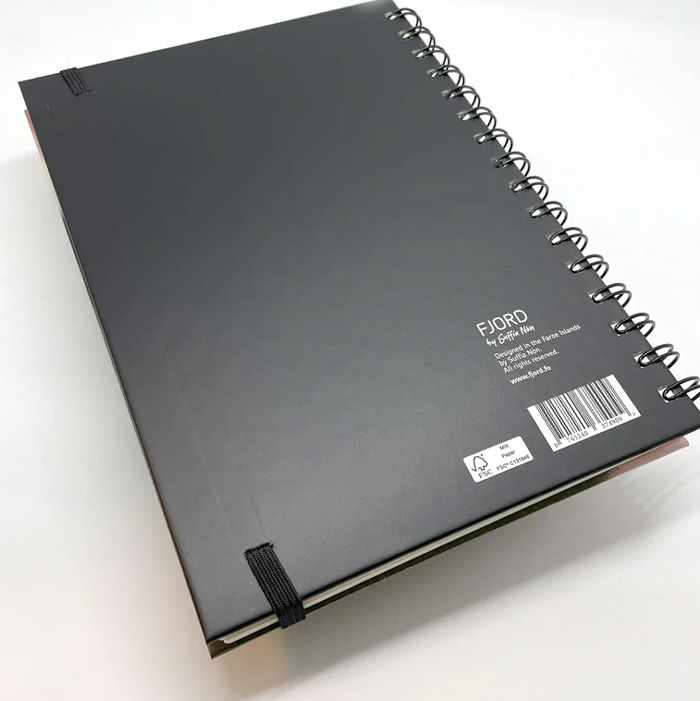 - Vøkur notesbók í A5 stødd, við spiralryggi, lastikkband og motivinum ‘Lundar’ frá FJORD.