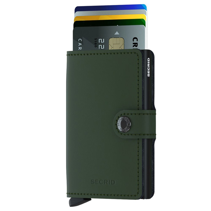 Secrid hava einarætt til mekanismuna, har tú við einfaldari rørslu kann fáa kortini til at glíða út úr mappuni, so tey liggja í flottari røð og eru til reiðar til nýtslu. Korthaldarin inni í mappuni úr aluminium verjir kortini frá at verða boygd, brotin og tráðleyst avlisin.