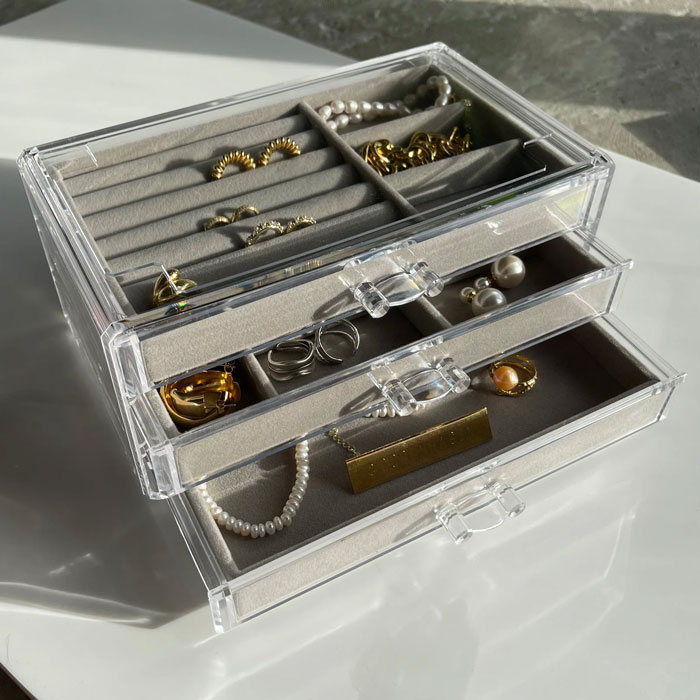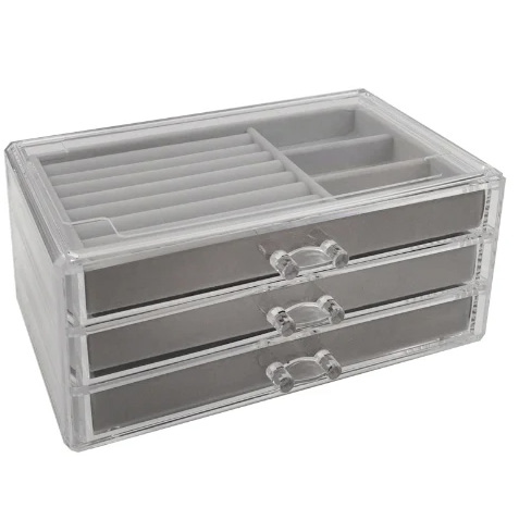 Plexiglas Smúkkuskrín við 3 Skuffum og Velourbakkum