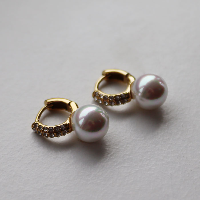 - Vakrir hoops oyraringar við feskvatnsperlum og glitrandi klárum steinum frá BAY by Aqua Dulce.